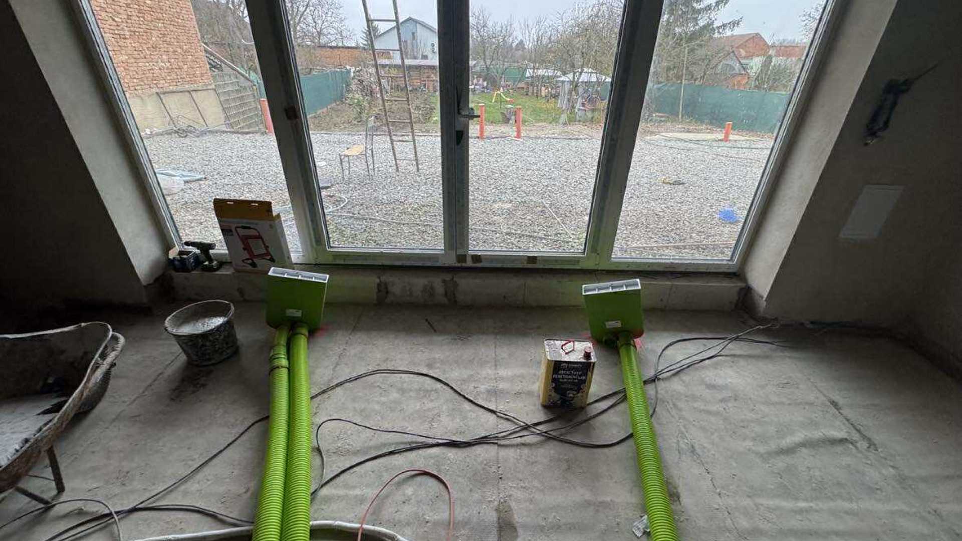 Instalovali jsme centrální rekuperaci s rozvody v podlaze, které zajišťuje výměnu vzduchu v celém domě při zachování tepla.